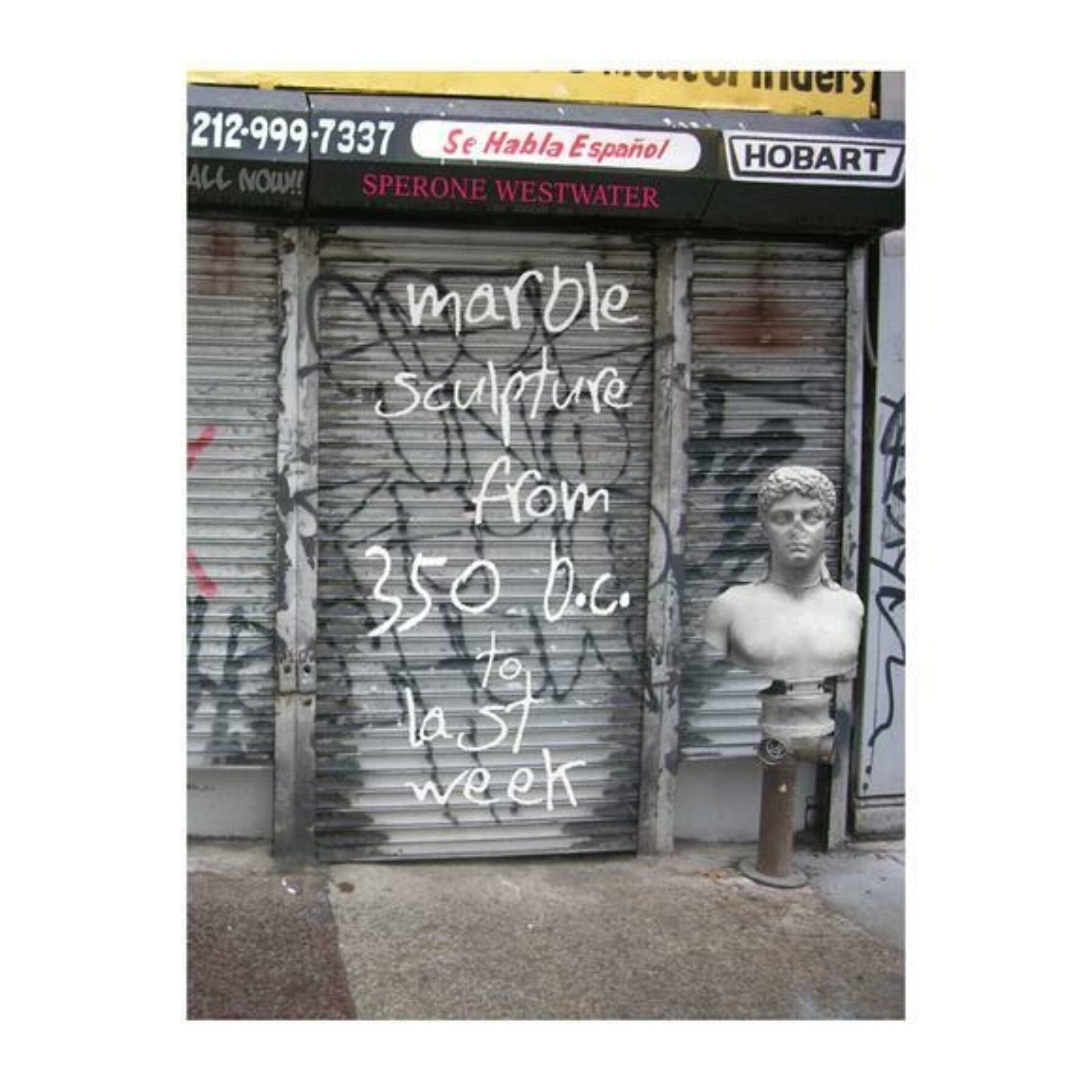 Catalogue published on the occasion of the exhibition Marble Sculpture from 350 B.C. to Last Week, presented at Sperone Westwater in 2012 and featuring white marble sculptures dating from 350 B.C. to the present day. This survey includes Greek and Roman antiquities, Neoclassical sculptures, and works by modern and contemporary European and American artists. Marble is one of the oldest and most fundamental materials of sculpture with wide-ranging use in the fine arts, decorative arts, and architecture. Among the works from Greek and Roman antiquity in Marble Sculpture from 350 B.C. to Last Week is an Ionian Greek grave relief from the second half of the fourth century B.C. that depicts three figures presenting a narrative on a farewell to the deceased. A Vestal statue from the second century A.D. represents the virgin goddess of hearth, home, and family in Roman religion. Notable Roman sculptures from the first and second century A.D. are also presented including a vase and a bust of young man. Significant sculptures from the fifteenth to nineteenth centuries include Icarus, the mythological figure of a man with wings, by Tommaso Bonazza (Venice 1696 – Padua 1775), as well as Hercules by Giacomo Cassetti Marinali (Venice 1682 – Vicenza 1757), carved out of pietra di Vicenza, to name a couple. The modern and contemporary works in Marble Sculpture provide a different context for the ancient material. Pioneer of the Dada movement, Jean Arp created Mediterranean Sculpture I (Orphic Dream), 1941, a biomorphic sculpture that has rounded and angular edges, encompassing the artist’s desire to conflate nature’s different forms. Richard Long’s Heaven (Portrait of Carl Andre), 2011, consists of six rows of large marble blocks. Infinite, 2011, by Fabio Viale, depicts two interlocked tires carved out of marble. Not Vital’s ½ Man ½ Animal, 1996, is an eleven-foot tall anthropomorphic sculpture that resembles a mythical creature. An installation of five slabs, Ai Weiwei’s Marble Doors, 2007, depicts a barricade of white and grey doors. Bertozzi & Casoni’s Gorilbattista, 2011, is a vanitas sculpture of a gorilla head on a plate. Tom Sachs’s Brute, 2009/2010, transforms an ordinary lightweight object to the extraordinary through the medium of marble. In Purity, 2008-2011, Barry X Ball reinvigorates the age-old tradition of figurative marble sculpture through the use of unconventional stones and methods. Sperone Westwater, 2012 Essay by Andrea Bacchi Softcover with dust jacket, 107 pages, 45 color plates; 12 x 9 in